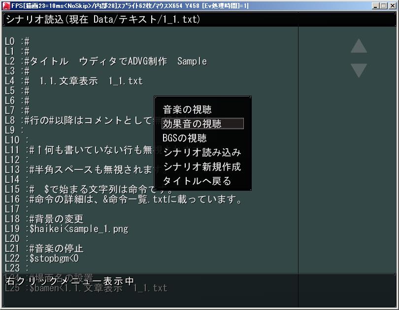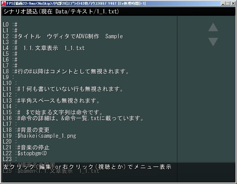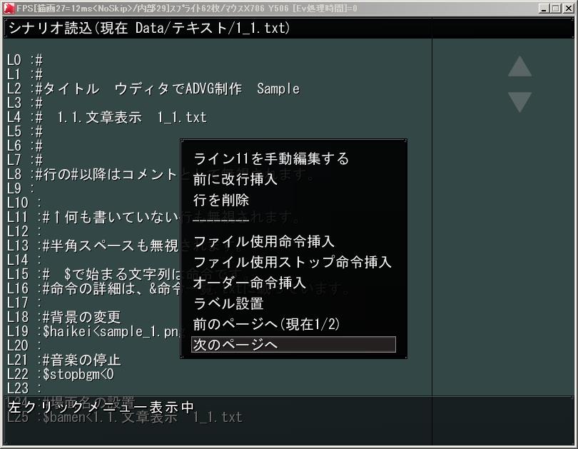 ウディタでADVG制作 コモンイベント のシナリオエディタの