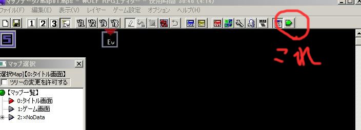 テストプレイ開始し、[shift]+[E]で呼び出します。
