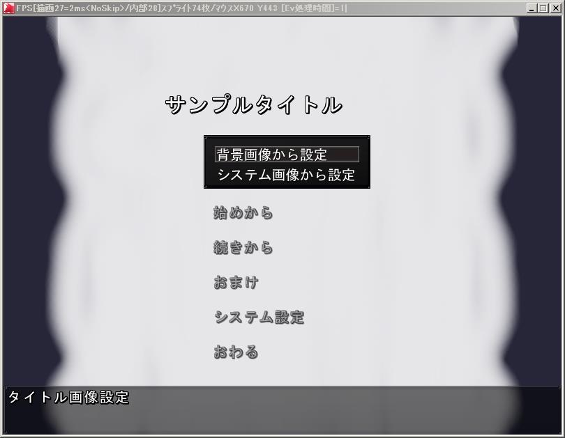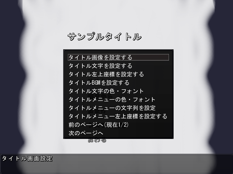 シナリオエディタからタイトル画面の設定などを作り、